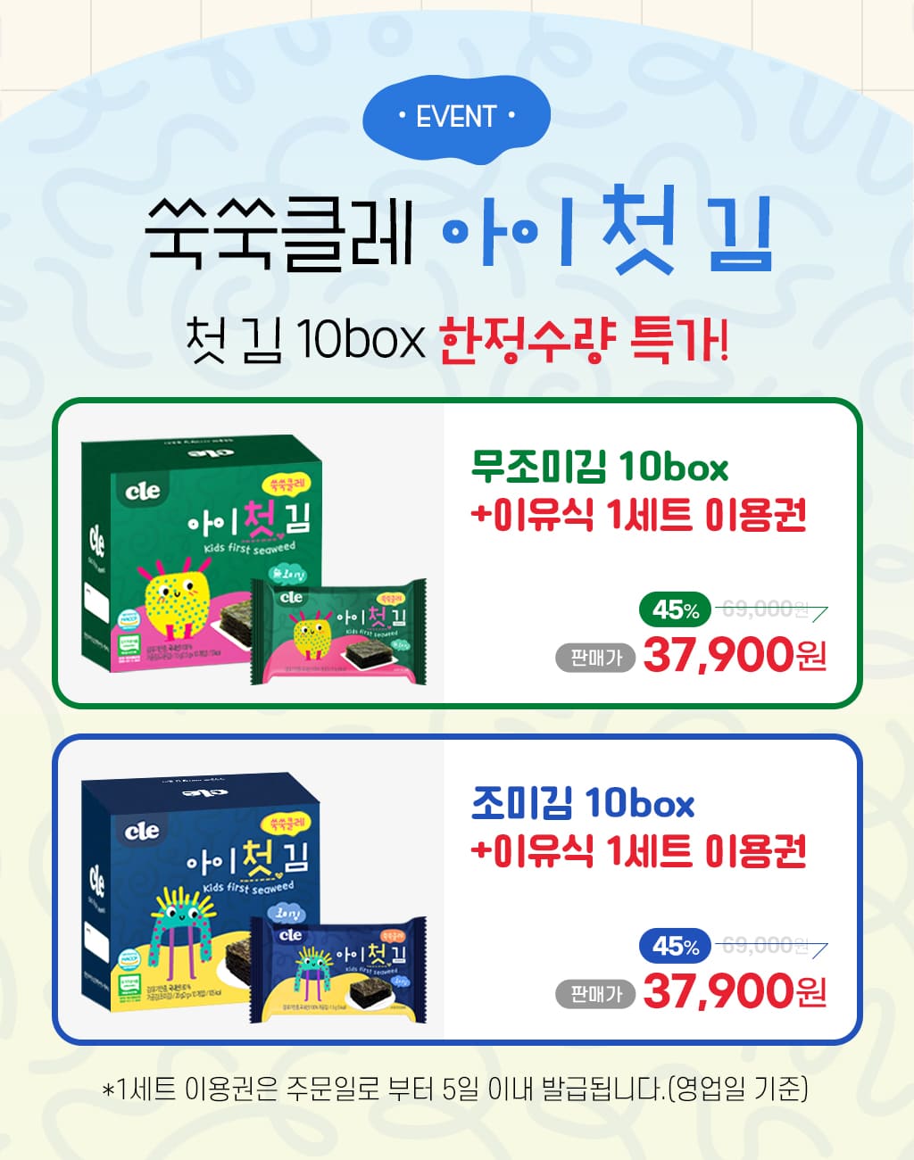 [한정수량] 아이 첫김 10box(+이유식 1세트 이용권)