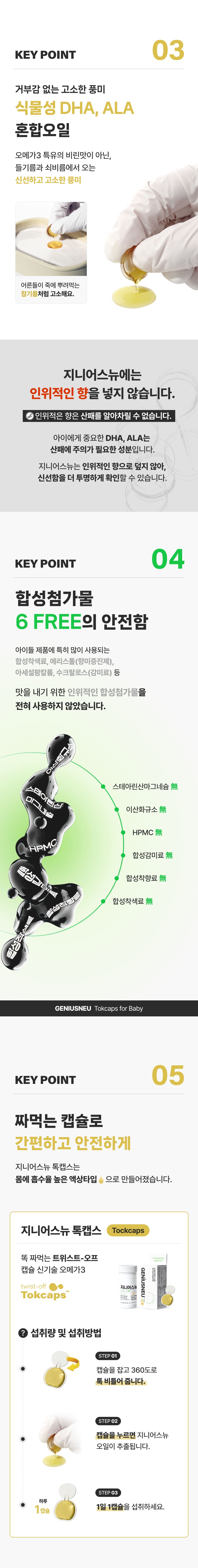 | 성분 및 함량 | [지니어스뉴] DHA 150mg, ALA 150mg, 비타민E 2.66 mgα-TE / 1캡슐 [그로우뉴] 칼슘 240 mg, 마그네슘 7.6 mg, 비타민 D 10 ㎍, 비타민 K 6 ㎍, 망간 0.6 mg |