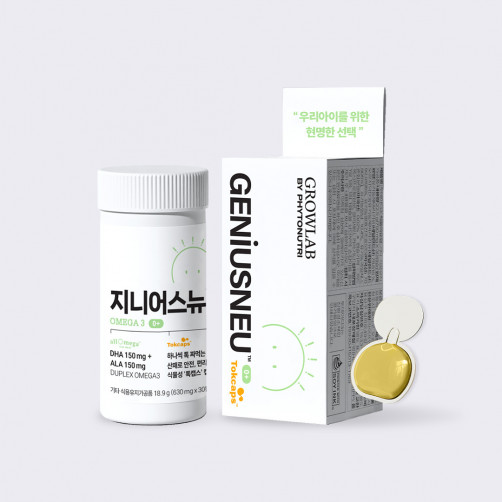 | 성분 및 함량 | [지니어스뉴 톡캡스]DHA 150mg, ALA 150mg, 비타민E 2.66 mgα-TE / 1캡슐/ [투데이디3] 비타민D 10㎍ (400IU) / 1캡슐 |