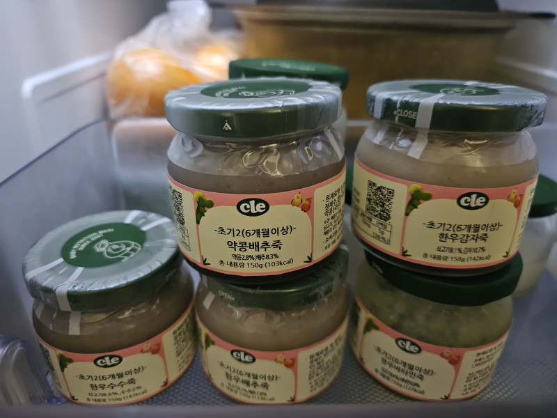 안녕하세요. 6개월 아가 엄마입니다 ☺️ 저희 아들은 워낙 배앓이, 감기 등 아픈 곳 없이 한달만 모유를 먹고 완분한 아기로 이유식 공부를하며 시판을 할지 두어달 정도 신중히 고민했어요. 클레는 유리병 이유식으로 유명했고 저는 초기1단계부터 굉장히 다양한 식단으로 짜여진 미음, 죽종류를 보고 정기식단을 선택하여 구매하게 되었답니다. 180일부터는 엄마로부터 받은 철분이 부족해지기에 초기 2단계(한우시작) 전 170일경부터 준비기(140g, 미음2병 무료체험) + 초기1단계를 시작하였는데요. 아기가 굉장히 좋아하고 잘 먹습니다. 분수토, 설사 한 번 한 적 없이 황금똥 매일이었어요 👍 초기 1단계에서는 5개월부터 섭취 가능한 미음 묽기의 청경채죽, 양배추죽, 고구마죽, 녹미죽, 애호박죽, 브로컬리죽, 흑미죽을 선택하여 매일 30~50g씩 소분하여 먹었습니다. 사과와 배 등 과일성분 죽은 제외하였습니다. 다양한 채소와 곡물을 먼저 알러지테스트를 하였네요 👏초기 2단계!기대해요💕